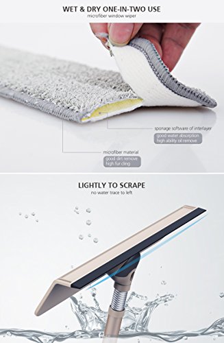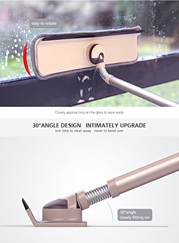 Elvoes Window Squeegee is born for cleaning glass. Patented design to bend, 12 stalls 360°rotation gondola, 30°slope design, durable alloy tube, to quickly and easily clean windows. Material: Rubber, Sponge, Microfiber, Iron pole, PP, TPR Color: Beige Handle length: 34"-44" Head size: 10.6*3.1" Cloth size: 10.8*3.3" Weight: 0.34kg Easy wiper Long-lasting rubber squeegee blade and microfiber scrubbing pads let wipe and clean in one simple swipe. An advanced Microfiber scrubbing pad that gently scrubs surfaces clean and traps dirt so you don't need to use strong chemicals. Cleans with just soap and water saving you money on spray chemicals and paper towels! Our microfiber scrubbing pad is durable, removable and machine washable. Be bent Patented stainless steel spring joint design, curved mirror does not stoop fit. What's more, 90°scraping with pole design, more uniform force, the cleaning effect is more obvious. 360°Turned 12 stalls 360°rotating gondola. Click-lock swiveling head design-locks at various angles, which will help you to change the different position of the cleaning. Another, it has 30°slope design, with the spring deformation , more effort to protect the clean surface, clean and efficient. Extendable pole Alloy connecting rod and alloy telescopic rod. Handle length can be adjusted freely to make cleaning easier. Our pole extends your reach 34" to 44" for those hard to reach areas, tall windows and more. Click that "ADD TO CART" button now to get on while these window squeegee is still in stock! 0 |