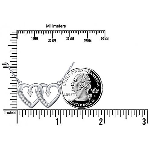 -. Title : 925 Sterling Silver Double Cz Heart Sister Pendant Necklace for Women, 18"