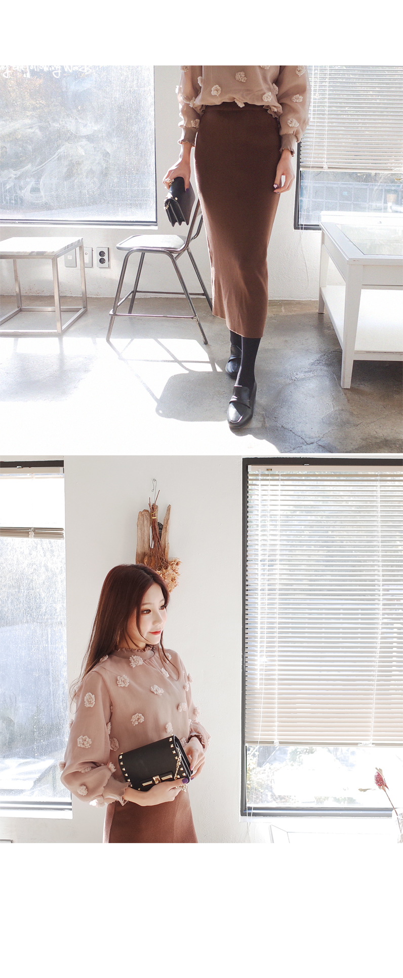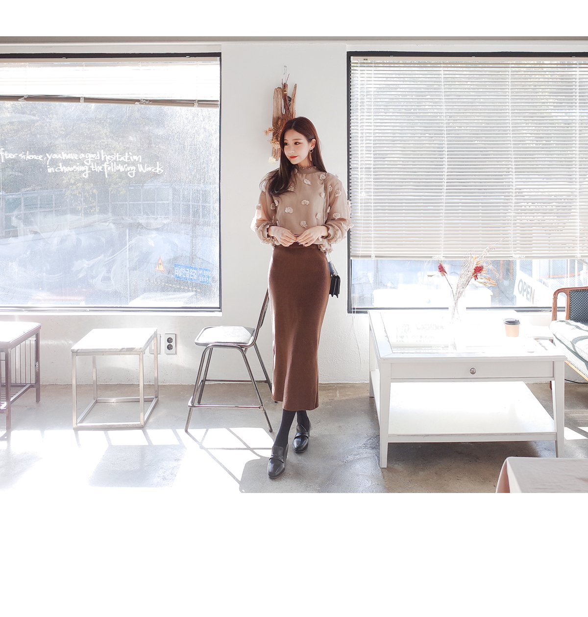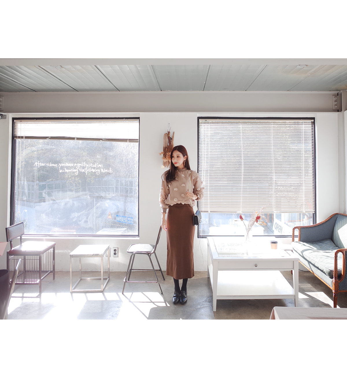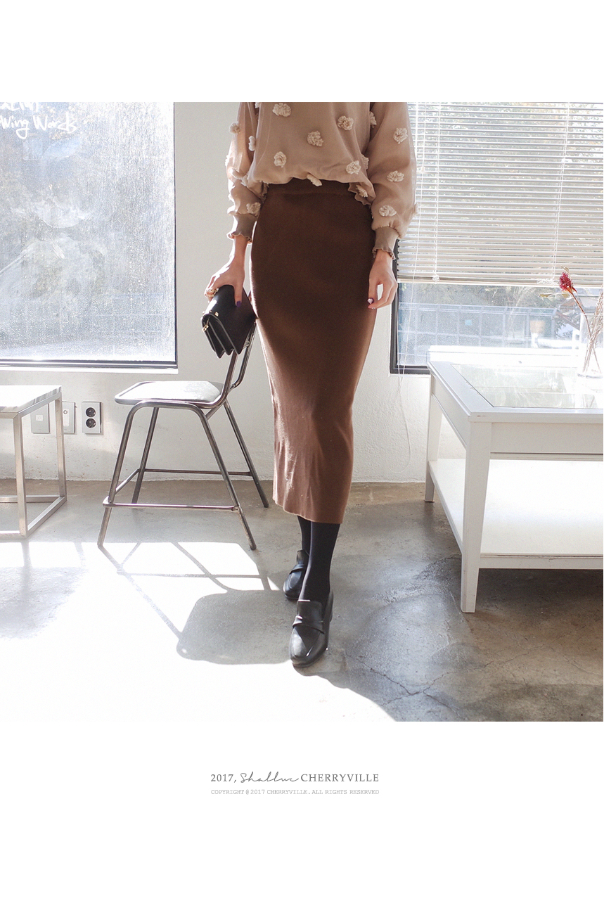 롱한 스타일이 여성스러운 니트 스커트입니다