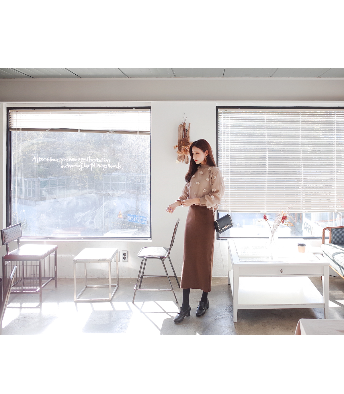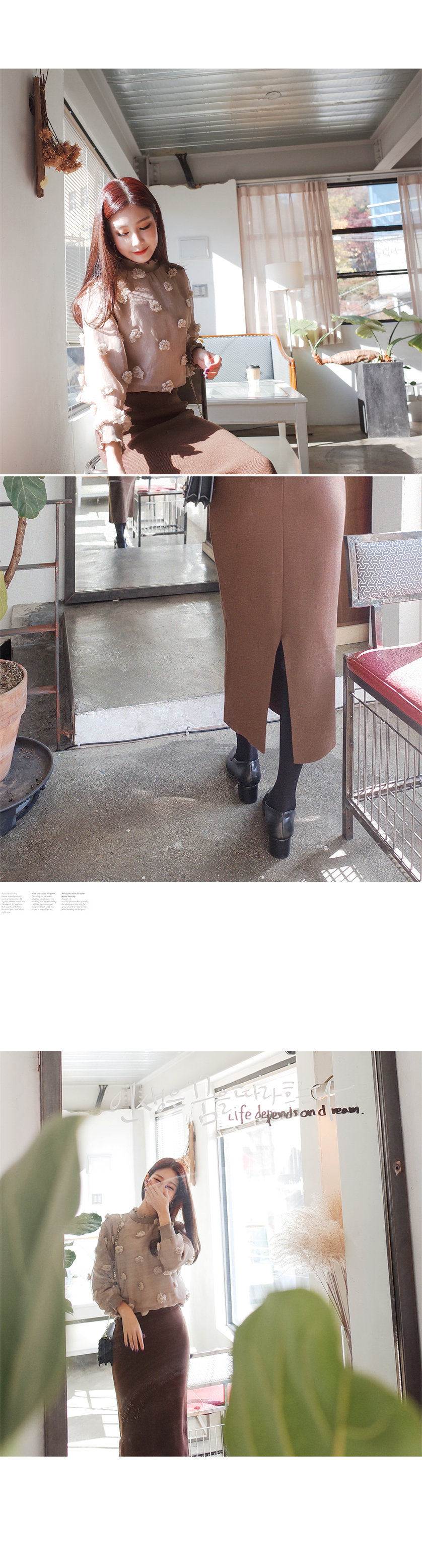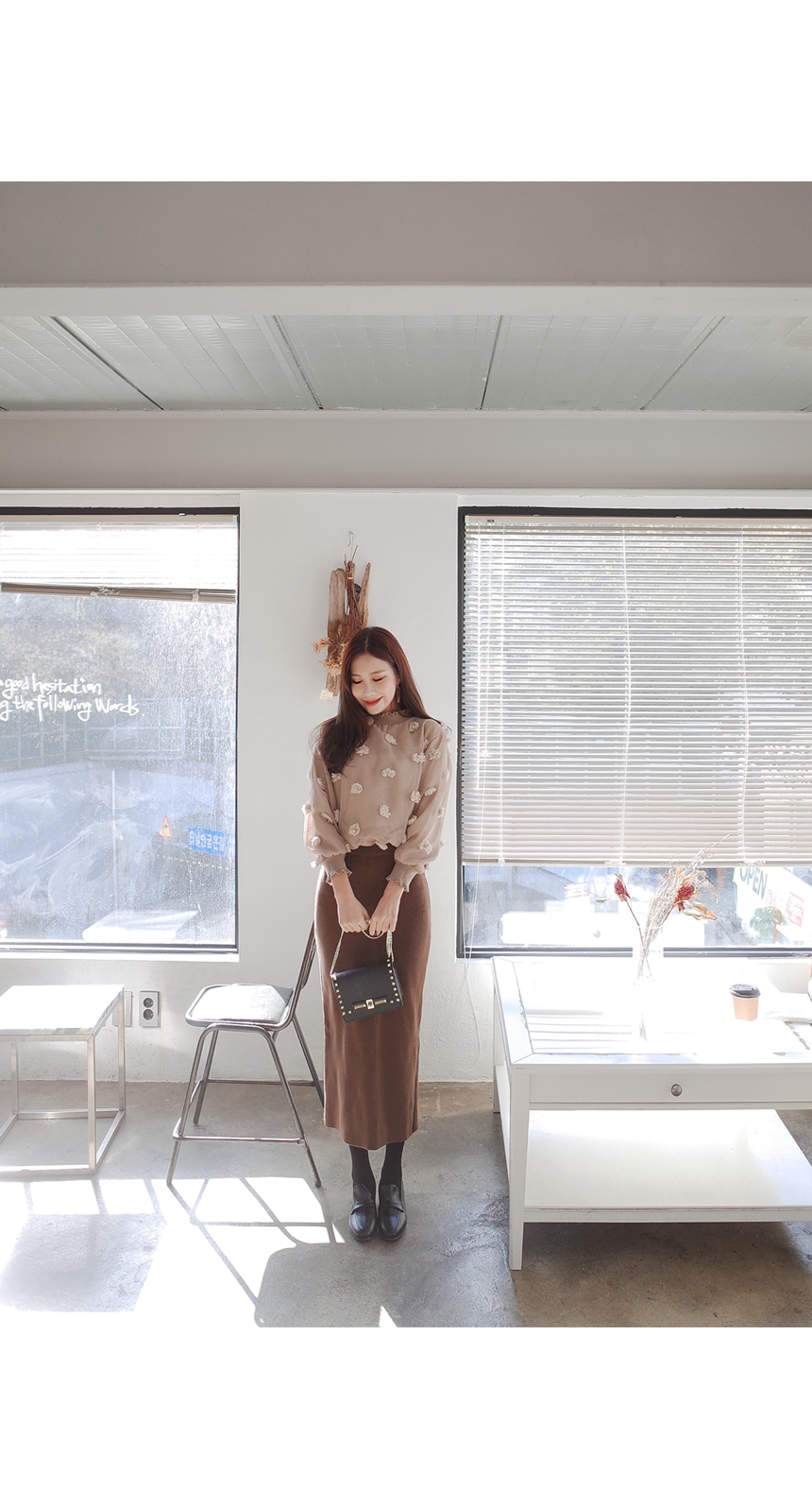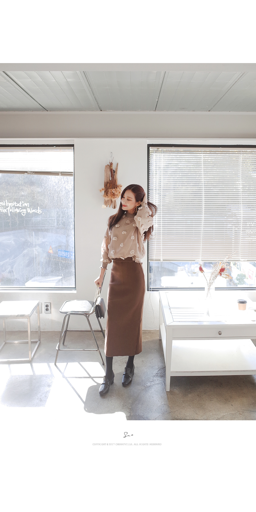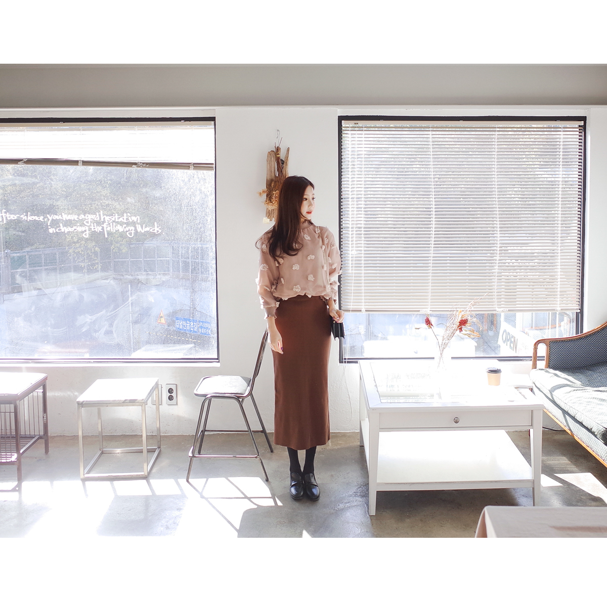 롱한 스타일이 여성스러운 니트 스커트입니다