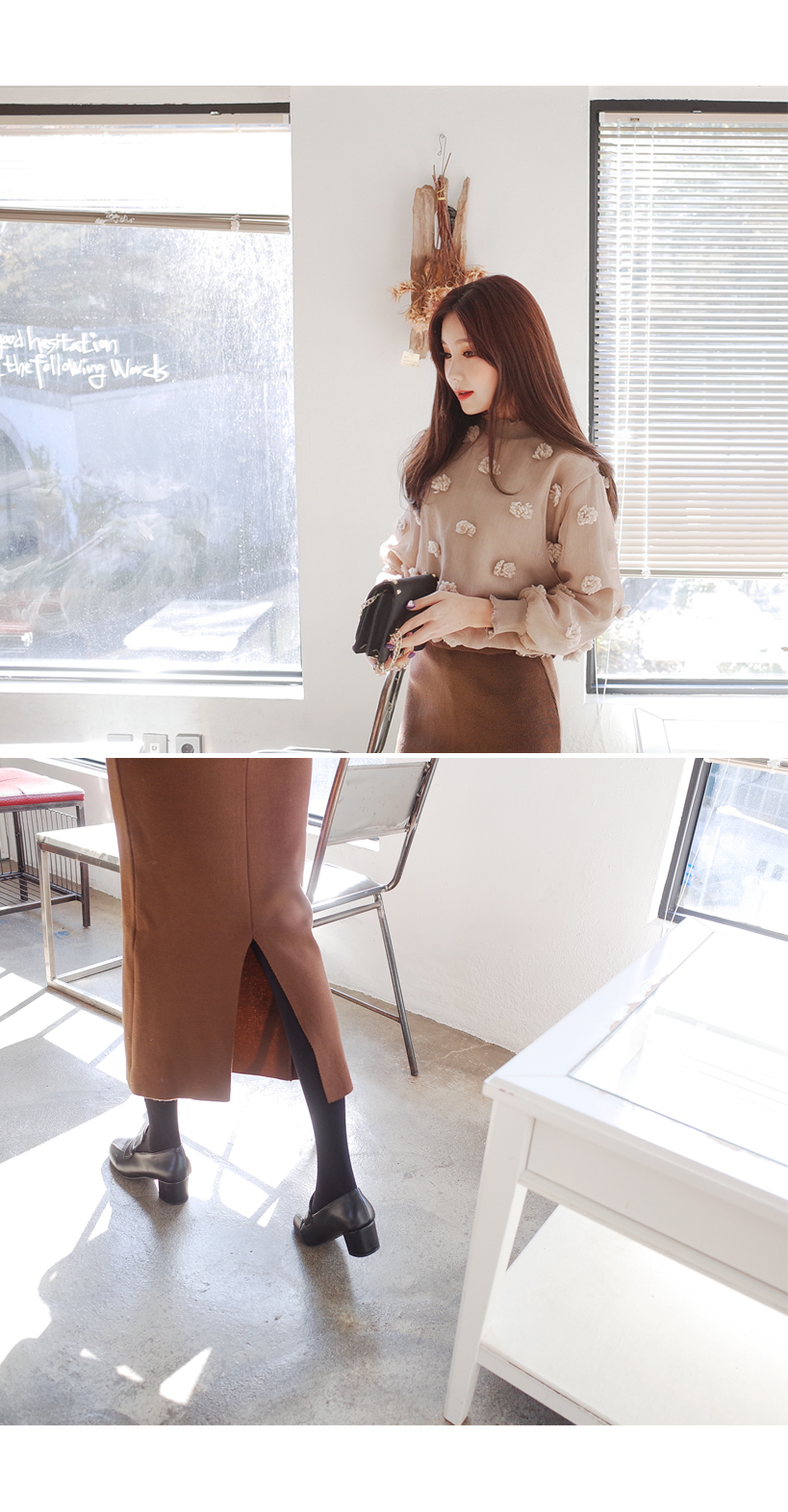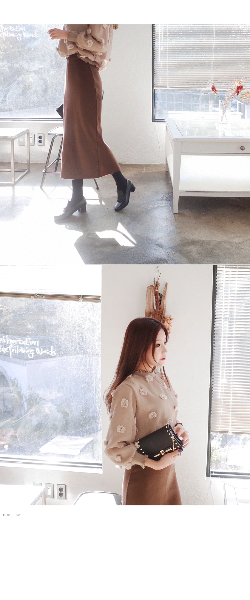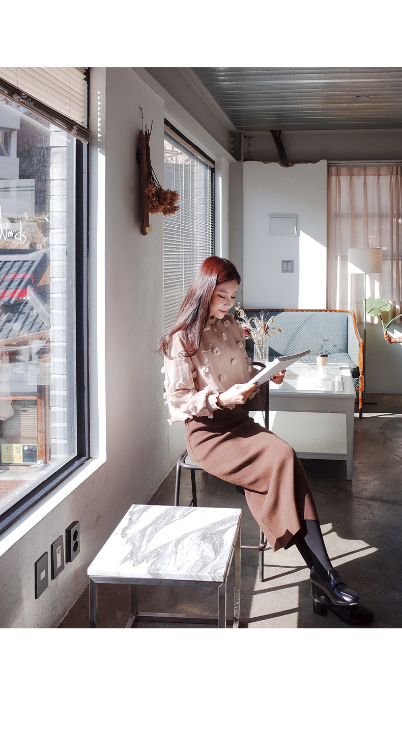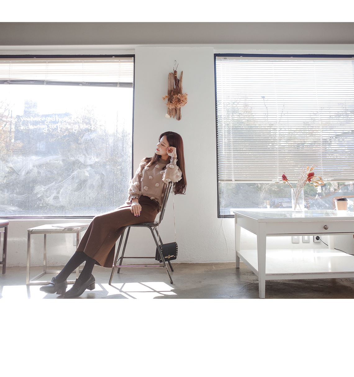 롱한 스타일이 여성스러운 니트 스커트입니다