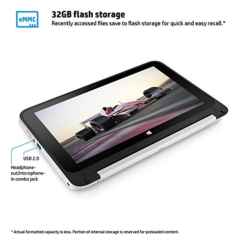 -. Title : HP 11-p110nr x360 11.6-Inch Convertible Laptop (Intel Celeron, 2 GB RAM, 32 GB SSD)