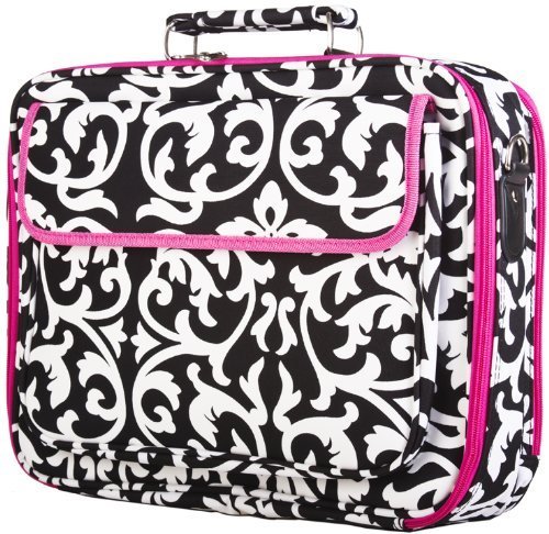 -. Title : LD Bags Damask Print 15-inch Laptop Bag, Black and White with Pink Trim