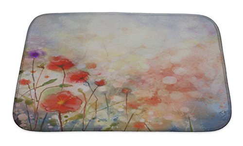 Gear New No Slip Microfiber Memory Foam Watercolor Painting Spring Floral Bath Rug Mat, 24" X 17"