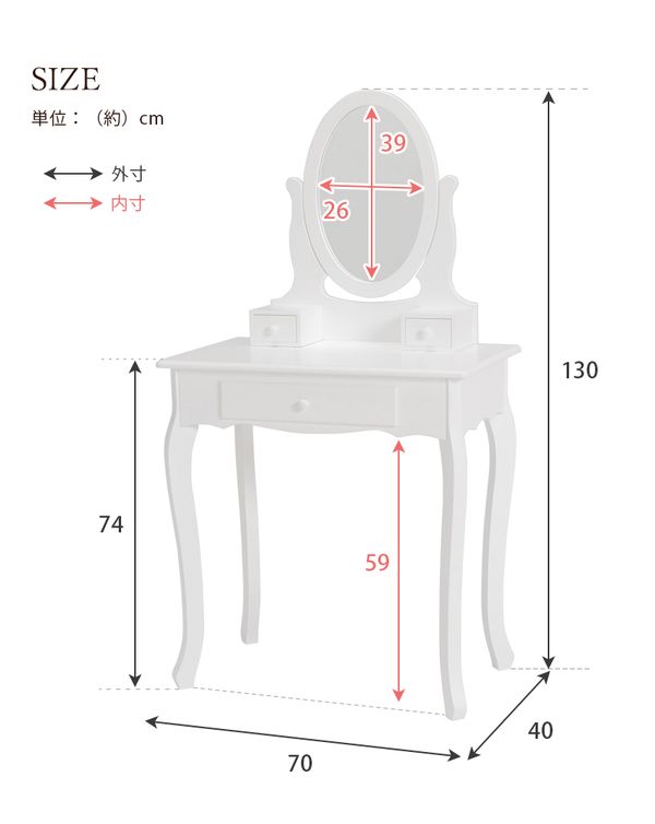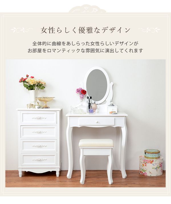 ●ロマンティックな脚とミラーの曲線が可愛いドレッサーセット