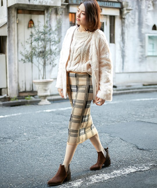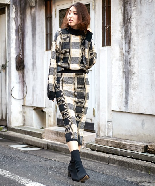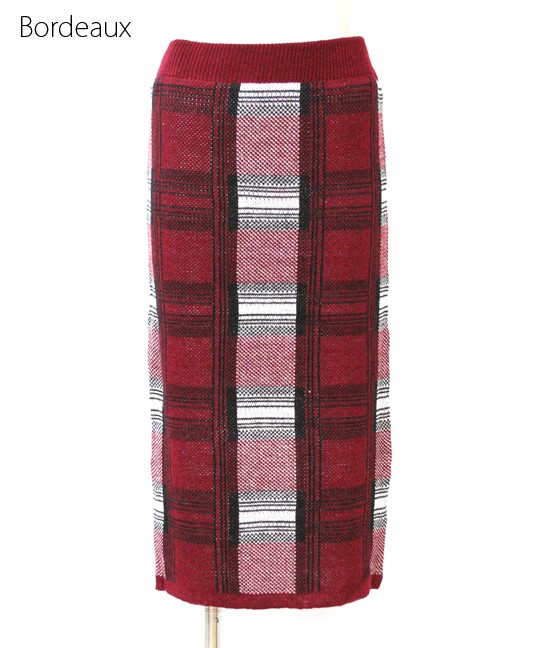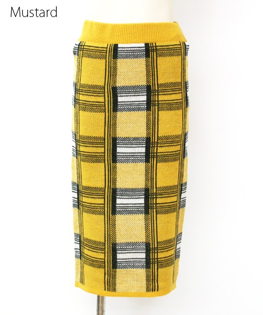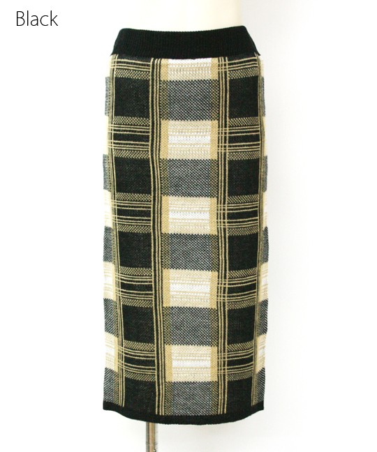 長めの丈が新鮮なジャガードのチェック柄ニットスカート!!