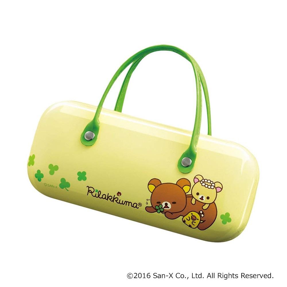 fk094igrjs持ち手が付いた、リラックマのかわいいハンドバッグ型のハードケースです サイズ (約)内寸:W145×D58×H40mm 個装サイズ:5.7×16.7×10.3cm 重量 約129g 個装重量:180g 素材・材質 スチール、合皮 仕様 バネ式 ハード 鼻当:なし 内貼り:ベージュ 生産国 中国 ハンドバッグ型メガネケース 持ち手が付いた、リラックマのかわいいハンドバッグ型のハードケースです
