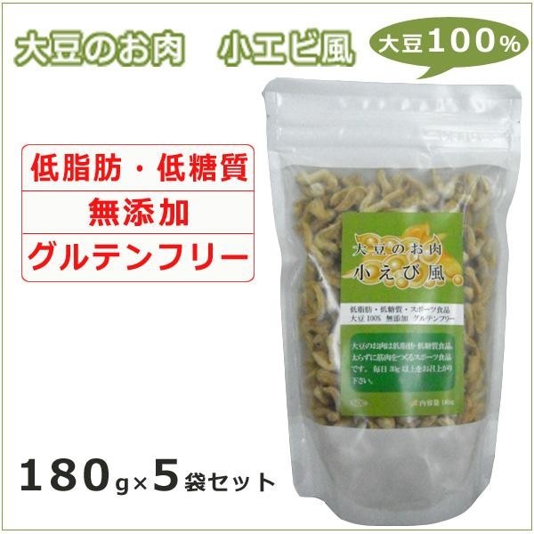 | 大豆100%使用で小エビ風に仕上げた、低脂肪・低糖質の大豆のお肉です。大豆の主成分である、たんぱく質、食物繊維がたっぷり含まれています。炒めもの、揚げ物、煮物、焼き物、サラダなどにお使いいただけます。毎日30g以上を目安にお召し上がりください。 |