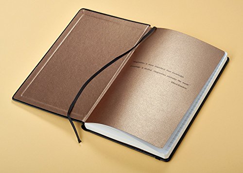 Black leather hard cover notebook with generous bronze gold embossing, elegant choice for any businessmen or high-class individual