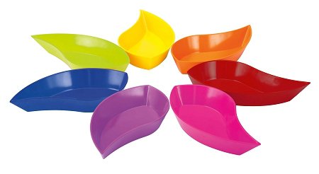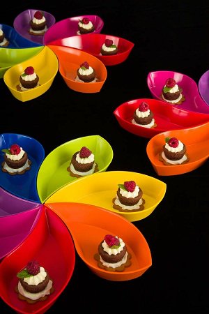 -. Feature : Vibrant table art that can be arranged in various patterns and stacked for convenient storage / 100% durable melamine plastic; bpa, pvc, phthalate, and lead free / Dishwasher safe, food safe, stain resistant; do not microwave / Perfect for serving up to seven dips, appetizers, fruits, or desserts / Multiple colors help guests easily identify their food