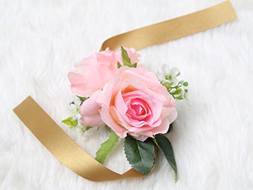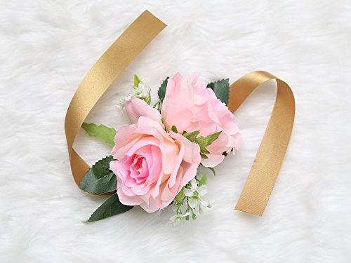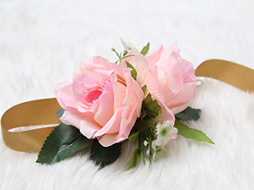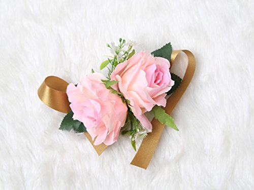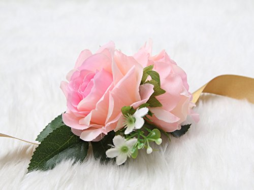 Wrist Corsage Rose Flower Pretty Wedding Bridal Bridesmaids (Classic Pink)