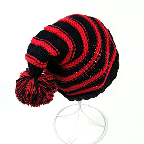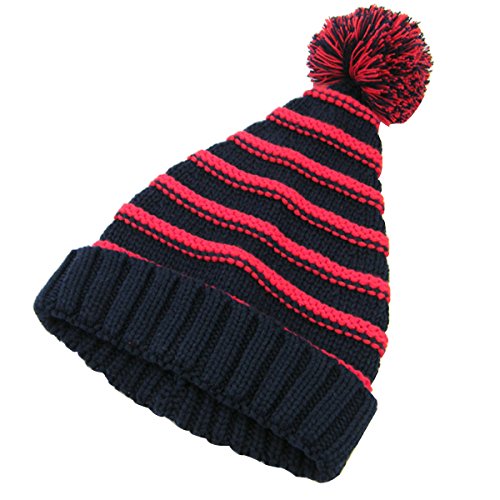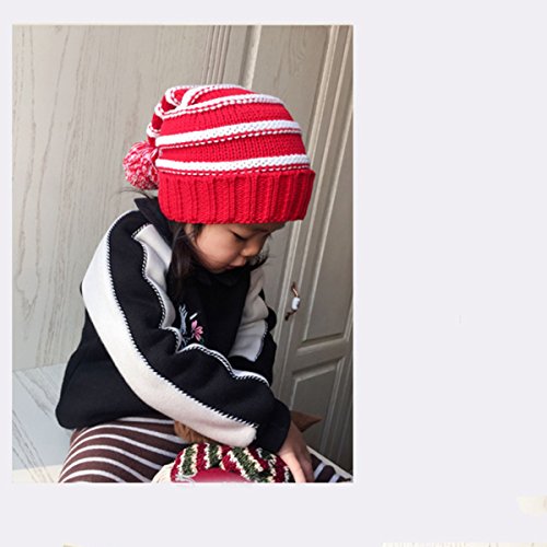 Package Including 1 x Classic Warm Adorable Kids Striped Knit Winter Pom Pom Hat Beanie Hats for Christmas - S (Red andamp; Dark Blue) 0
