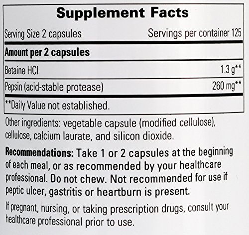 Integrative Therapeutics - Betaine HCl - Support for Healthy Stomach Acidity, Gastric Function, and Protein Digestion - 250 Capsules