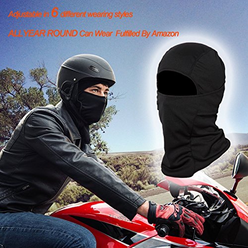 -. Feature : ✅THIN & BREATHABLE BALACLAVA - This Face Mask Balaclava is Lightweight but Breathable with Breathable Material Allows Easy Breath. Extremely Strong and Durable- Wrinkle free - Portable and Comfortable - Quick Drying. Stay Warm and Dry. / ✅MOISTURE WICKING & UV PROTECTION ETC.- Our Full Face Mask Provide Premium Performance for Absorbency Wicking and UV Protection. Sun and Wind, Dust and Pollution, Rain and Snow. Your face, Ear and Neck are Under Great Exposure to these Harmful Factors. / ✅HIGH-TECH MATERIAL & UNIQUE DESIGN - Premium Hi-Tech Polyester Fibers-Absorbency, Wicking, Durability and Abrasion Resistance, wrinkle free. Can be Worn as an Open or Closed Balaclava, Scarf, Hat or Face Mask, also with the Chin Dropped or as a Neck Gaiter for Greater Ventilation or Saharan Style and Ninja Hoodie. / ✅MULTIPURPOSE USE - Ideal for the Use When Motorcycling, Riding, Cycling, Running, Trekking, Climbing, Skiing, Tactical training and Other Outdoor Sports. Also It is Perfect to be the Essential Equipment of War Games, Airsoft Paintball and Hunting. / ✅ONE SIZE FITS MOST - Elastic Fabrics with 4-Way Stretch Makes Sure the Greater Mobility and Shape. It is Versatile to be used All the year around. In Summer, it is Sweat Absorption and Protect from the Sun. In winter, it Helps to Protect from Wind and Cold. Really Practical.