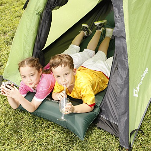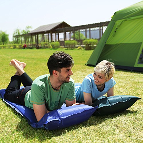 Waterproof 190T Polyester, 2 inch thickness when full inflated; Two pads can be buckled together to make you to stay more intimate with your family