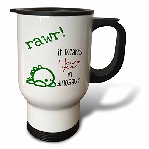 3dRose tm_193339_1 Rawr it Means I Love You in Dinosaur Stainless Steel Travel Mug, 14 oz, White