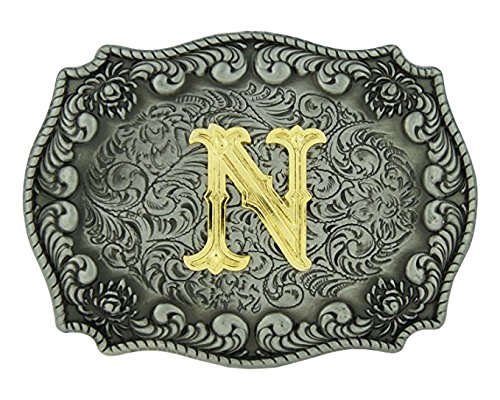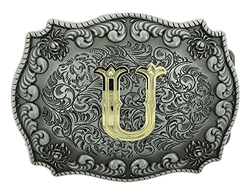 MR WESTERN Initial Letters Belt Buckles Cowboy Rodeo Gold/Silver Large Western Style Belt Buckle Initial Letters Dimensions: 4" x 3" and Fits Up to 1.5" Wide Belt Strap Chrome plated rodeo style belt buckle features a gold plated letters on the front. Lead and Nickel Free Brand New in Stock & Ships from TEXAS Perfect Gift for Western Lovers and CowboysFeature