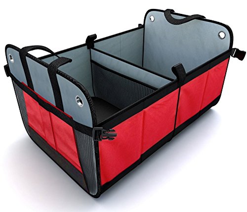 The Premium Car Trunk Organizer is manufactured with 600 D polyester fabric that can withstand the wear and tear of vehicle use.Support is added within the walls, center divider, and base plates (bottom) of the product to keep cargo in place while you are moving