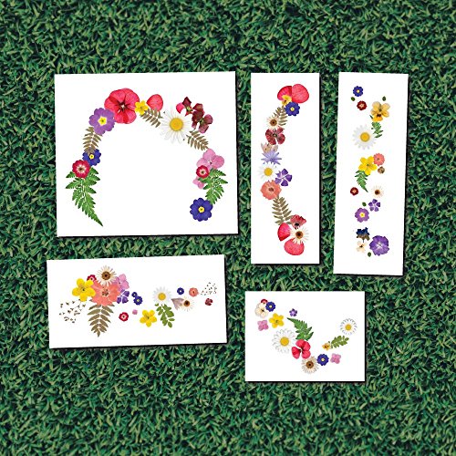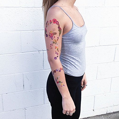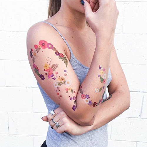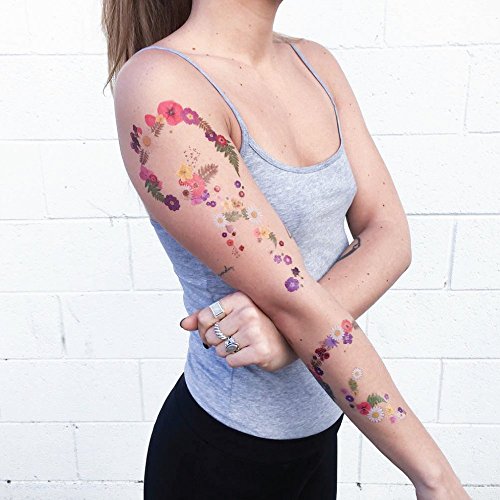 Tattify Colorful Flower Temporary Tattoos - Dry Garden (Set of 10) - Premium Quality, Long Lasting and Waterproof
