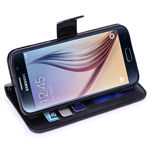 LK 3320724 PU Leather Wallet Case with Stand for Samsung Galaxy S6 - Black