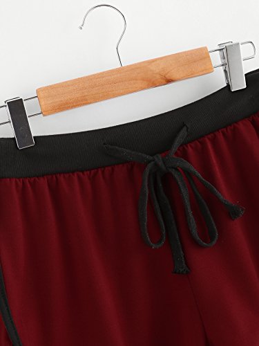 -. Feature : Material: Cotton Blends / Contrast Trim, Elastic Waist, Drawstring, Mid Waist / Comfortable, well-fitting, good for running errands, jogging, and other casual activities. / Machine washable / Please refer to the size measurement below before ordering.