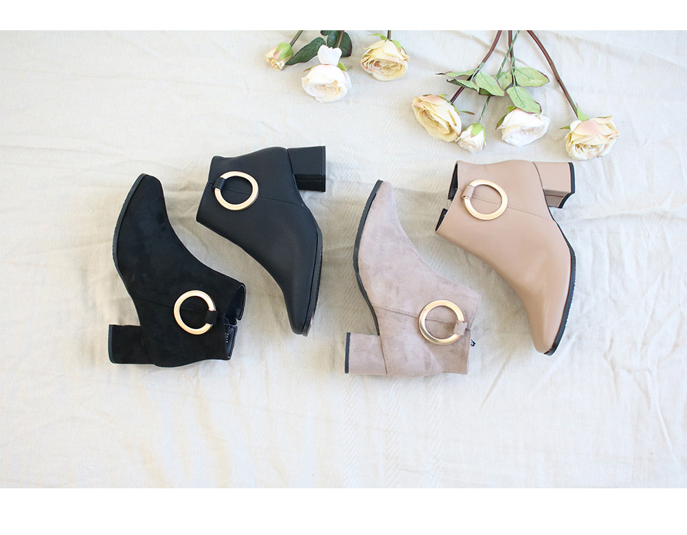 베이직하면서도 세련된 디자인이 매력적인 링 앵클부츠입니다.