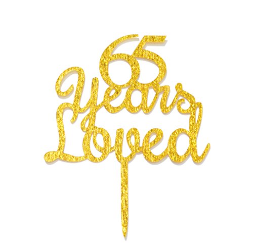 Qttier 65 Years Loved Cake Topper Happy 65th Birthday Anniversary Party Decoration Premium Quality Acrylic Gold