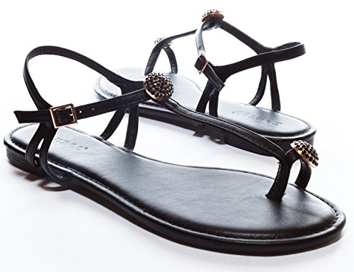 Bamboo Women's Strappy Studded Flat Sandal