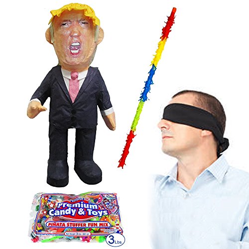 Studio : Pinatas Publisher : Pinatas Binding : Toy Product Description This product is delivered by the manufacturer in an assortment of colors and / or random models.?For this reason Amazon.com can not guarantee the shipment of a particular color and / or model.?By ordering this item you will receive one of the colors / patterns shown in the image, depending on the available stock.?Amazon.com thanks you for your understanding’ Kit includes 1 pinata, 2 lbs. Of toys and candy, 1 buster stick and 1 bandana. Pinata measures 24 inches high by 13 inches wide by 6 inches deep. Comes with strong cable tie at the top for hanging pinata and opening for adding fillers. Pinata makes a fun party game, unique decoration centerpiece and exclusive photo prop. Pinata filler includes 3 pounds of assorted candy and plastic toys, enough for 10 guests. 18" long pinata buster stick is made of wood and is decorated with fringe-cut tissue paper in assorted colors. Bandana comes in assorted colors (our choice please), measures 20" by 20" and is 100% polyester. Use bandana to blindfold player before hitting pinata. 0