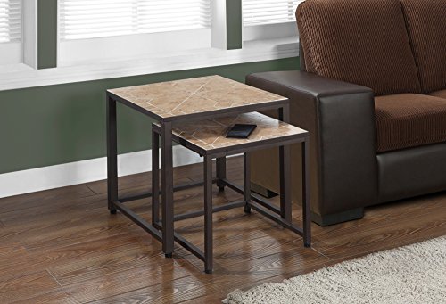 -. Title : Candace & Basil NESTING TABLE - 2PCS SET / TERRACOTTA TILE TOP / BROWN