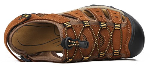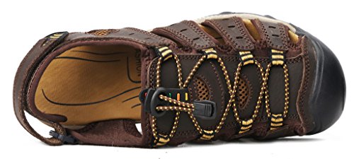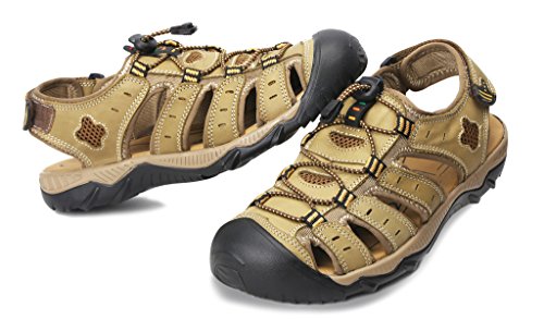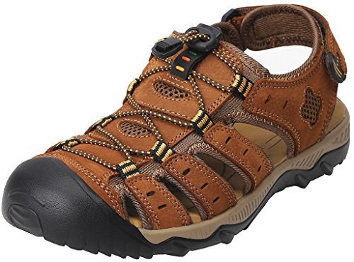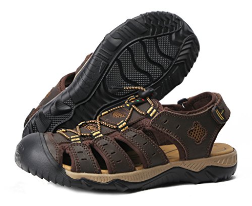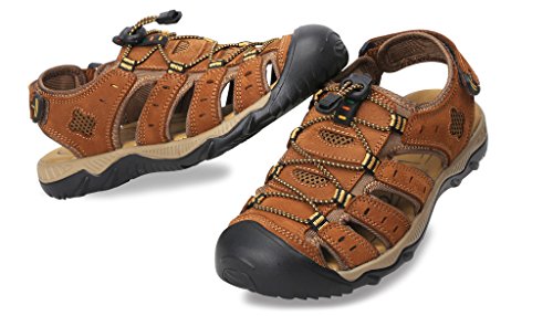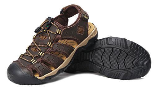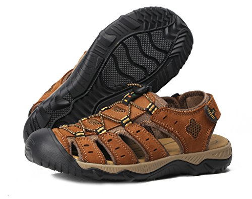 -. Binding : Apparel -. Brand : 4HOW -. Department : mens -. Feature : New Without Box.Non-Slip rubber sole . / Leather Upper With Fabric UnderLay And Fabric Bindings With Zig Zag Stitching / Adjustable Velcro Strap To Ensure Fit Well / Footbed Keep Foot Comfortable. Closed Toe To Protect Toes / Comfortable and high quality .Free Shipment and free return -. Model : S20624504 -. ProductGroup : Shoes -. ProductTypeName : SHOES -. Title : 4How Men's Leather Sandal Outdoor Shoes