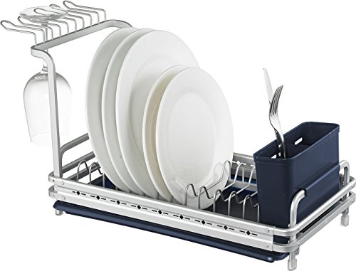 -. Feature : Small size dish drying rack perfect for a young couple family. Handles up to 11 full-size plates / Comes with plastic convenient drip tray. Detachable wine glasses hanger and flatware cutlery utensil caddy bin. / Simple, contemporary design for any kitchen style. / Made of Alumina, sturdy and lightweight construction, non rusting forever. / Beyond the Amazon's A-Z claim policy, you are backed by Surpahs' 100% satisfaction guaranteed program, welcome to compare.
