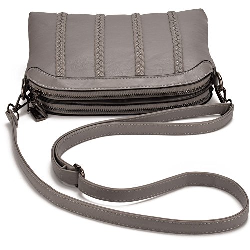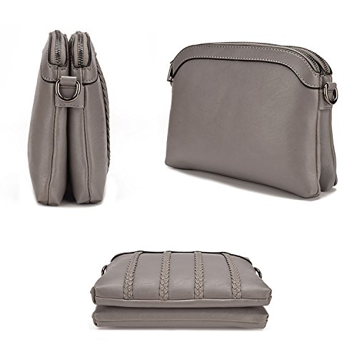 JIARUO Women PU Leather Crossbody bag purse Double Twin Pocket Shoulder bag handbags