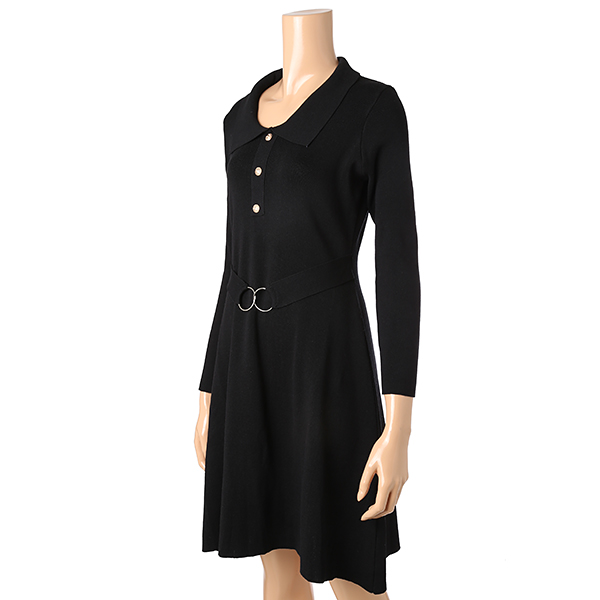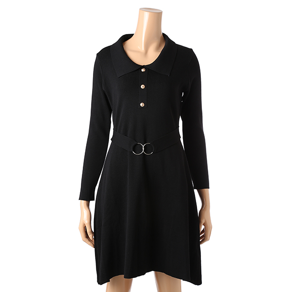 허리라인의 링 디자인이 슬림해 보이는 A라인의 니트 원피스입니다.