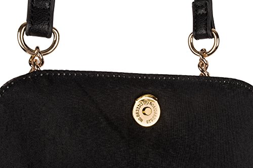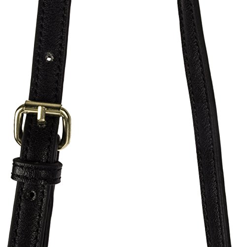 Elegant gold tone curb chain with black faux leather straps, allows for versatile use and easy styling. Piping combines with quality stitching to reinforce the structure and style of the bag.