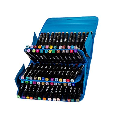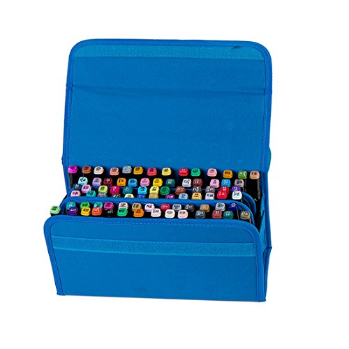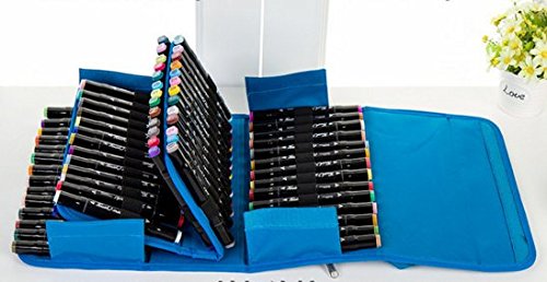 SuperLi 80-slot marker pencil case for color and sketch marks, permanent paint marks, dry wipe marks, repair marker pens, colored highlighters(blue)