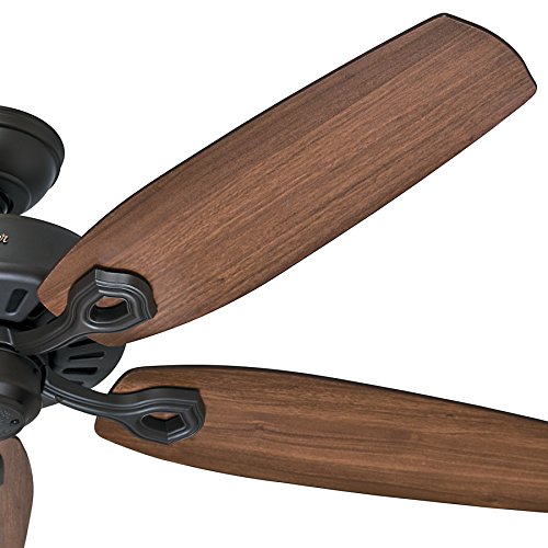 This fan is a mainstay in the Hunter product line for a reason. The casual, traditional style will compliment your room without overpowering it. With a 52-inch blade span and a variety of finish options, this fan is flexible enough to fit almost any large room you choose.