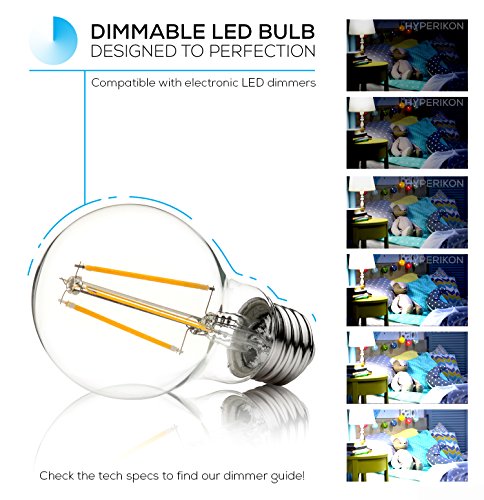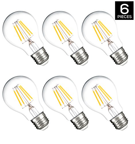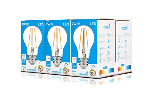 Hyperikon A19 LED Vintage Filament Bulb, Dimmable, 7W (60W Equivalent), 720 lumen, 3000K (Soft White Glow), Omnidirectional, E26 Base, IC Driver, CRI 90+, 120v, UL-Listed - (Pack of 6)
