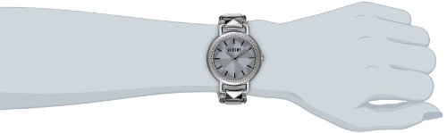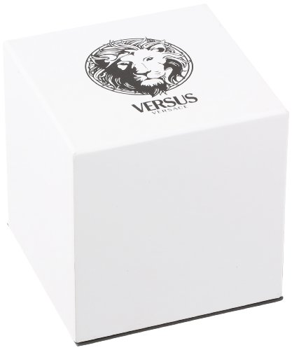 Stainless steel case with a stainless steel pyramid link bracelet. Fixed textured stainless steel bezel. Silver (geometric design) dial with silver-tone hands and index hour markers. Dial Type: Analog. Quartz movement. Scratch resistant mineral crystal. Pull / push crown. Solid case back. Case diameter: 38 mm. Case thickness: 9 mm. Round case shape. Band width: 21 mm. Jewelry clasp. Water resistant at 30 meters / 100 feet. Functions: hour, minute. Additional Info: withstands rain and splashes of water, but not showering or submersion. Casual watch style. Versus by Versace Coconut Grove Silver Geometric Dial Stainless Steel Pyramid Link Ladies Watch SOA010014.Feature