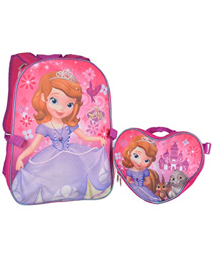-. Binding : Lage -. Brand : Disney -. Color : multi-colored -. EAN : 0727379053177 -. Feature : Officially licensed Sofia the First kids back pack with lunch bag / Large size backpack dimensions approx 15"H x 11"W x 5"D and lunch bag dimensions approx 10"H x 8"W x 3"D / Features zipper closure, side pockets, adjustable shoulder straps and straps to attach lunch bag to backpack / Purple and Pink in color / Suitable for childrens ages 3 and up -. IsAutographed : 0 -. IsMemorabilia : 0 -. Label : Ruz -. Manufacturer : Ruz -. MPN : 053177 -. NumberOfItems : 1 -. PackageQuantity : 1 -. PartNumber : 053177 -. ProductGroup : Apparel -. ProductTypeName : OUTDOOR_RECREATION_PRODUCT -. Publisher : Ruz -. Size : 16" -. Studio : Ruz -. Title : Sofia the First 15" Backpack with Lunch Bag -. UPC : 727379053177