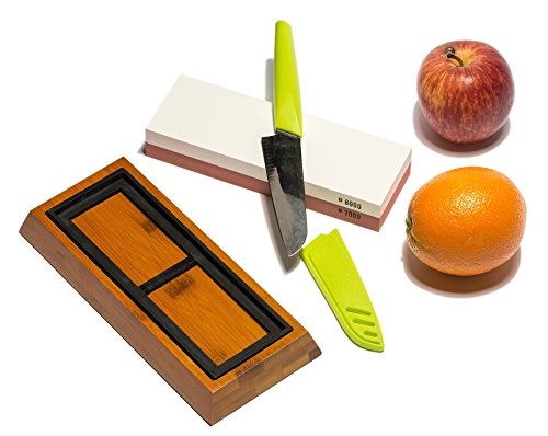RAZOR SHARP KNIVES ---- Our Easy to Use Premium Quality Sharpening Stone Grit 3000/8000 is designed to make your knives razor sharp & provide extra fine finish/polish on your blades. So you can Cut, Slice & Dice through your Food with Ease.