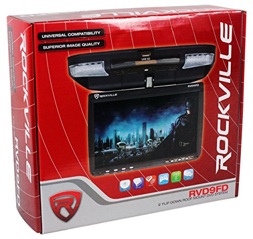 - Feature : Rockville RVD9FD Black 9" Flip Down Roof Mount TFT LCD Monitor DVD Player / 9" High Resolution Flip-Down, Widescreen TFT-LCD Overhead Monitor / Great for trucks, vans, SUVs, and other vehicles / Built-in DVD player with anti-skip mechanism / Overhead console with two super bright LED dome lights