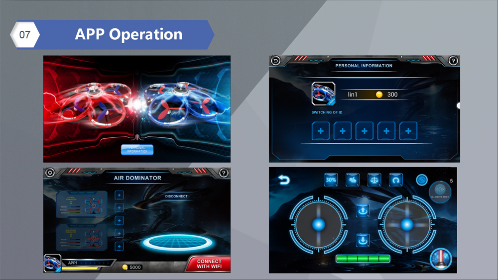 Gravity Sensor can set your hand free, and the drone can be controlled by sway your phone.