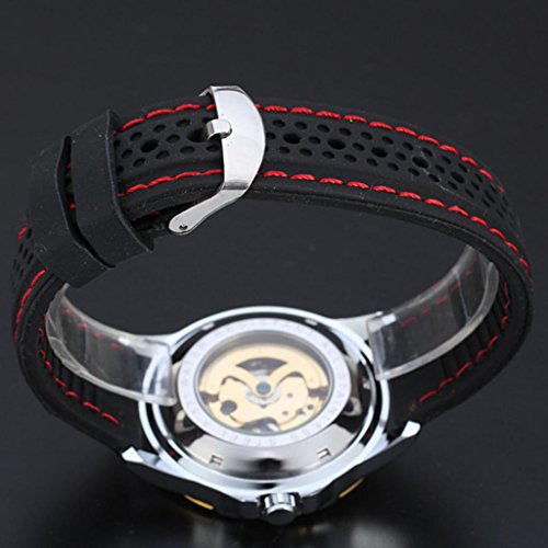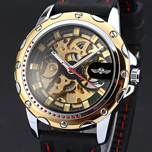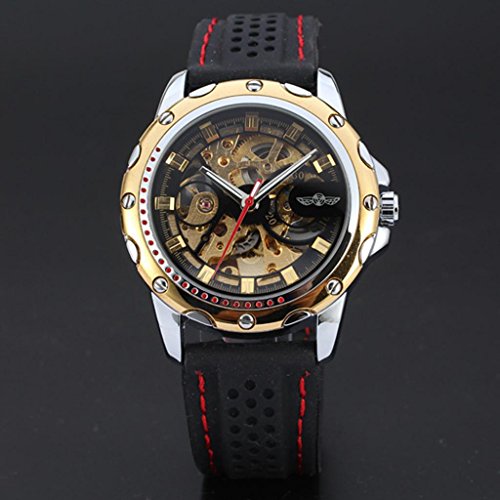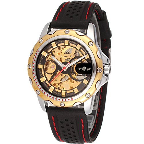 E-FUTURE WINNER BLACK RUBBER GOLDEN SKELETON AUTOMATIC MECHANICAL MENS SPORT WATCH WW132