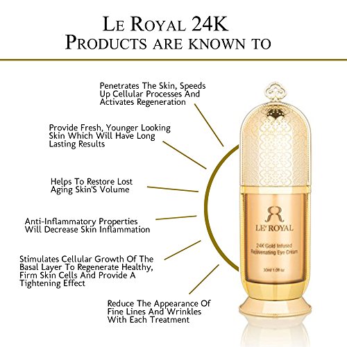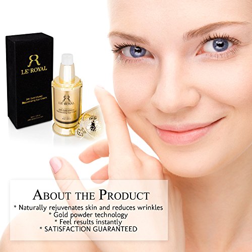 -. Binding : Misc. -. Brand : Le' Royal 24k -. EAN : 0728295158595 -. Feature : Le royal brings you: THE BEST eye wrinkle cream anti-aging eye cream skin care treatment. The best way for you to treat Dark Circles , Puffy Eyes ,and Under Eye Wrinkles / Naturally rejuvenates skin and reduces wrinkles: Many of our customers have experienced a noticeable difference to their skin within the first few applications. less noticeable wrinkles and a more healthy, vibrant looking skin. Perfect for All Skin Types Including Dry Skin, Sensitive Skin, Discolored Skin & UV Damaged Skin / Gold powder technology: Gold is thought to have antibacterial properties and to help transport oxygen molecules into the skin for cell renewal to treat ulcers and inflammatory disorders of the skin. / Feel results instantly: This soothing, lightweight serum glides smoothly onto delicate skin and absorbs quickly for a youthful radiant glow . It instantly Leaves skin feeling silky, smooth, and hydrated. / SATISFACTION GUARANTEED: We are so sure you'll love our product that we guarantee you your MONEY BACK within 30 days if you don't -. IsAdultProduct : 0 -. Label : Le' Royal 24k -. Manufacturer : Le' Royal 24k -. MPN : Eye Cream -. PackageQuantity : 1 -. PartNumber : Eye Cream -. ProductGroup : Beauty -. ProductTypeName : BEAUTY -. Publisher : Le' Royal 24k -. Studio : Le' Royal 24k -. Title : The Best Eye Wrinkle Cream Anti Aging Eye Cream Skin Care Treatment for Puffy Eyes , Dark Circles and Under Eye Wrinkles -. UPC : 728295158595