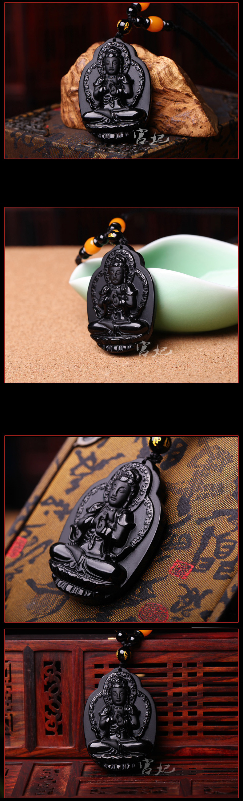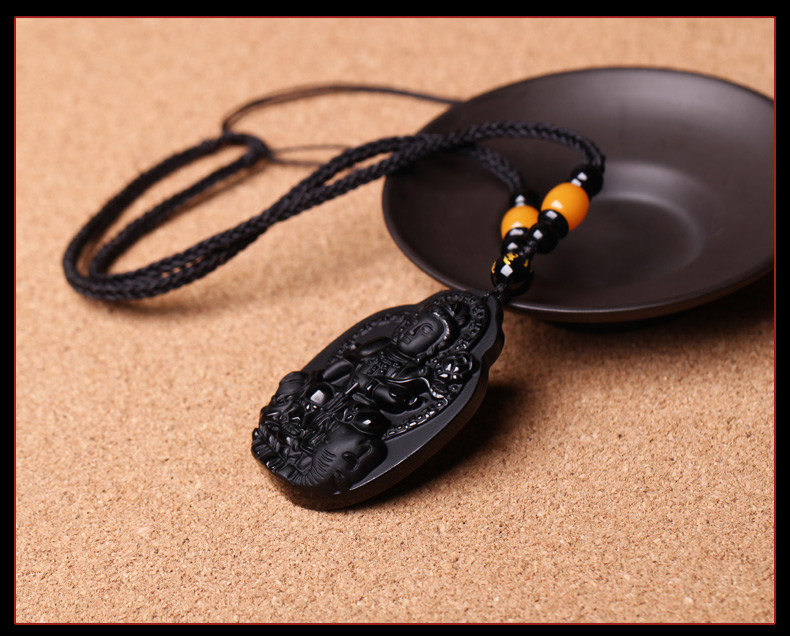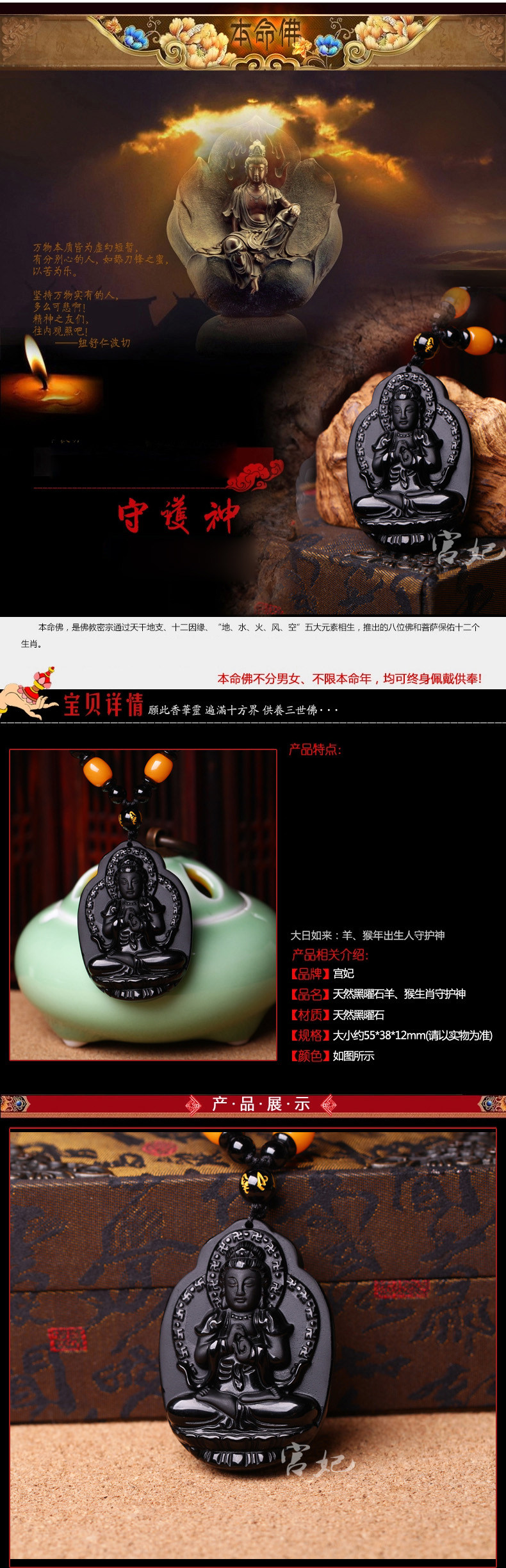开光黑曜石大日如来菩萨吊坠男士项链 生肖属羊属猴守护神本命佛