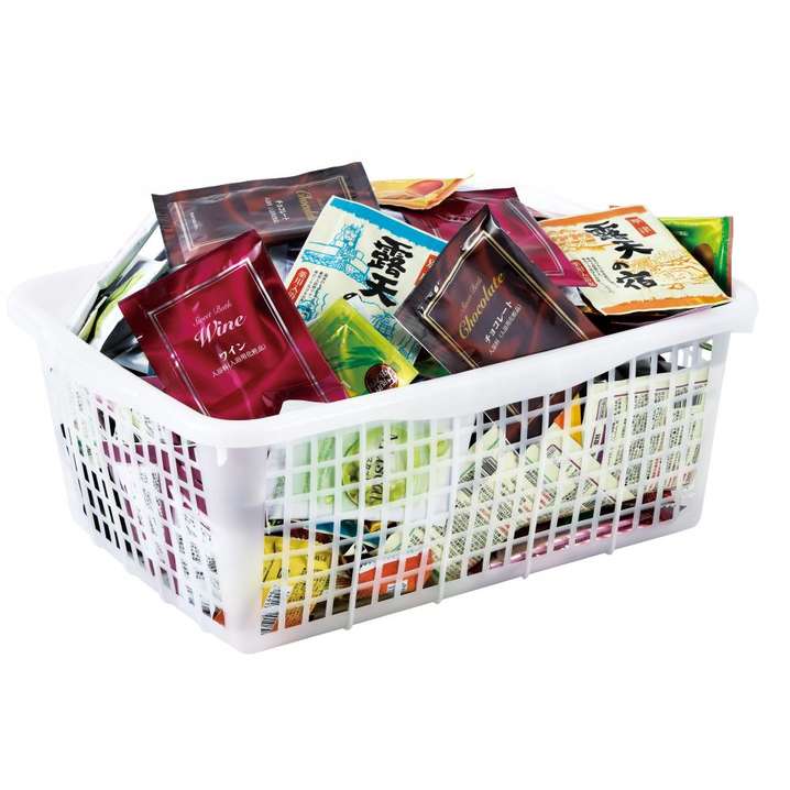 ●カゴ付きなので納品後すぐ実施できます。パウダーやリキッド、タブレットタイプまでさまざまな種類の入浴剤がたっぷり400個!!お店ごとに「どこまでOKか」を設定し、楽しんでみてください。詰める人によってかなり“性格”が表れるかも?