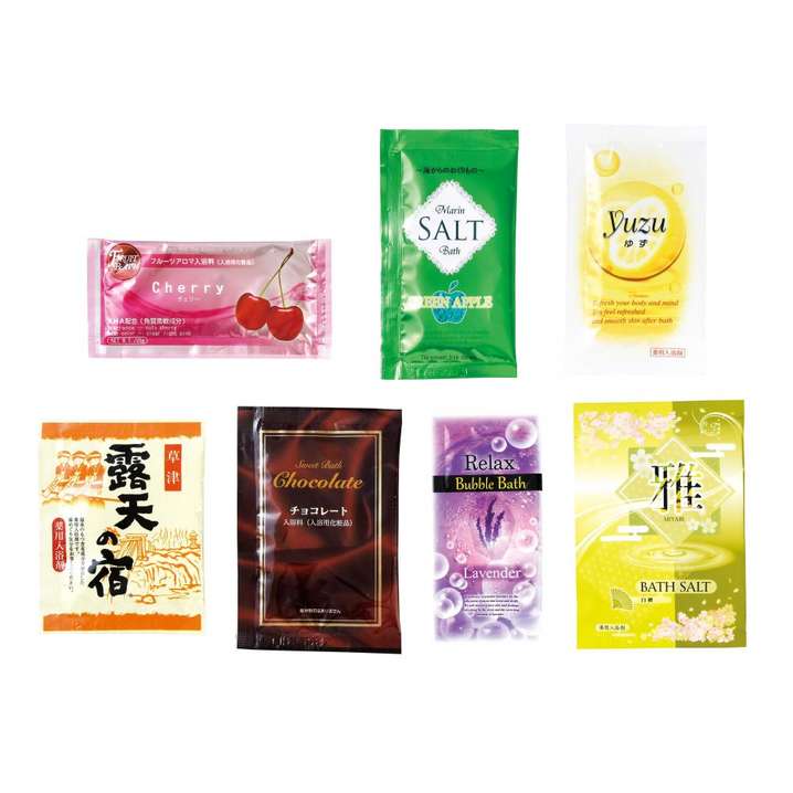 ●その他スペック:<セット内容> 入浴剤8種取混合計400個・カゴ1個・袋50枚(予備含む)