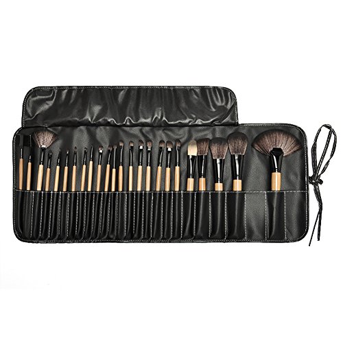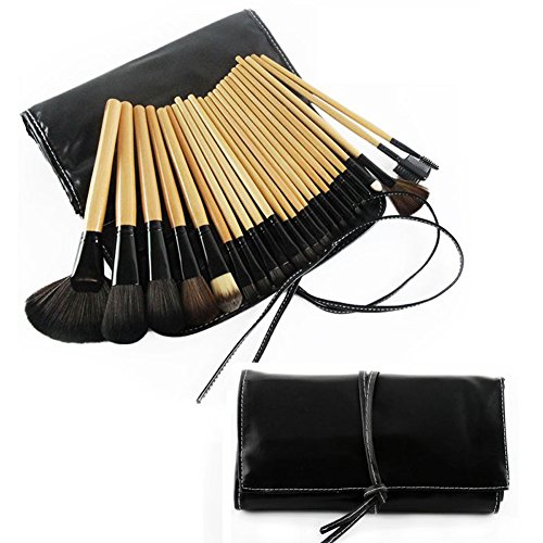 -. Feature : Suitable for Professional use or Home use / Made of excellent material, safe and soft for your facial skin / Convenient to store and carry, ideal for travelling / Material: Wood + aluminum alloy + nylon hair + PU leather / Package: 24Pcs Makeup Brushes with case, Sponge Puff, 15 Color Concealer Palette