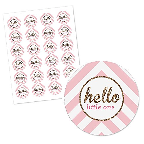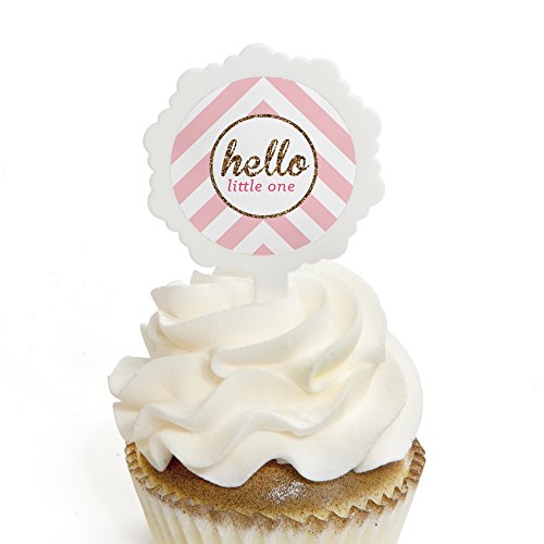 Hello Little One - Pink and Gold - Cupcake Picks with Stickers - Girl Baby Shower Party Cupcake Toppers - 12 Count